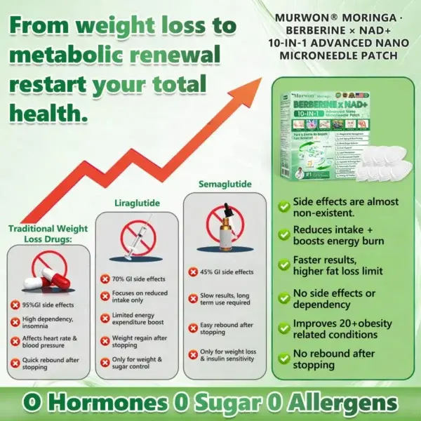 ย ๐๐ฎ๐ซ๐๐๐ยฎ๐ด๐๐๐๐๐๐ฎ ยท ๐๐ฒ๐ฟ๐ฏ๐ฒ๐ฟ๐๐ฃ๐ ร ๐๐ผ๐+ ๐๐-๐ข๐ง-๐ ๐๐ฑ๐๐ฎ๐ป๐ฐ๐๐ ๐๐๐ฃ๐ค ๐๐๐๐ง๐ค๐ฃ๐๐๐๐ฅ๐ ๐๐๐ญ๐๐ breaking away from the burden of traditional injectable or oral weight-loss products, this advanced nano microneedle transdermal delivery system gently and steadily releases active ingredients for up to 8 hours. Core ingredients Moringa andย ๐๐๐ซ๐ฏ๐ฒ๐ซ๐ข๐ง๐ work synergistically to support appetite management and lipid metabolism, making fat loss feel more natural and effortlessโwithout extreme dieting or physical strain. At the same time, NADโบ supports cellular energy levels and skin firmness, helping maintain a healthy, well-toned appearance during body-weight changes. The overall formula is gentle and stable, offering a more comfortable experience for those seeking an effective, non-irritating, and non-injectable approach to weight management.